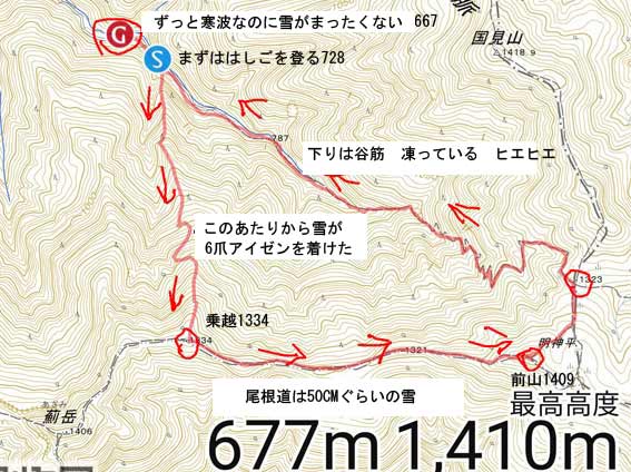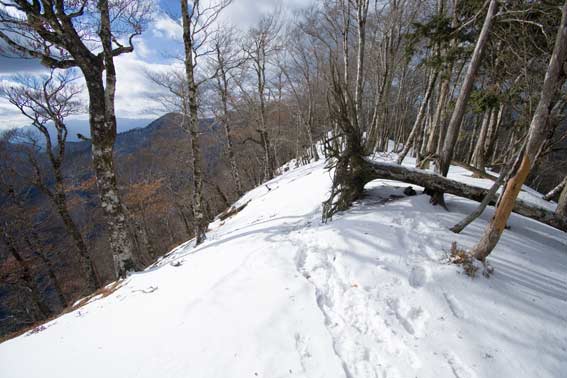 | 山行時間 6時間半 寒い寒い 乗越1334の手前 雪の急斜面 緊張して進んだ |