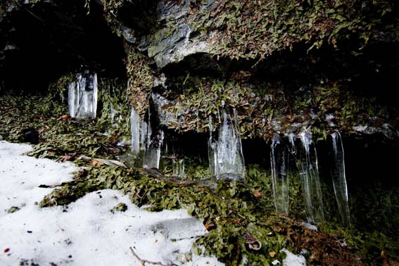 | 氷の柱 氷瀑ともいう つららは上から凍っていく 雫は下から積み上がって凍っていく ということを発見 |