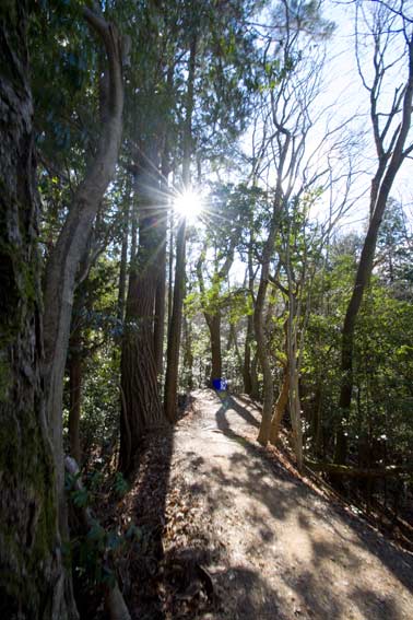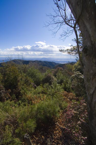| ここは京都西山と呼ばれる山系で、天王山付近は300M足らずの低山、そこからポンポン山に向かうと600M ぐらいに上がる。都市近郊の低い山なので強者が右や左にルートをつけ、昔からの登山道が より複雑になり、「え 昔 通った道 どっち」ということが多い。 |