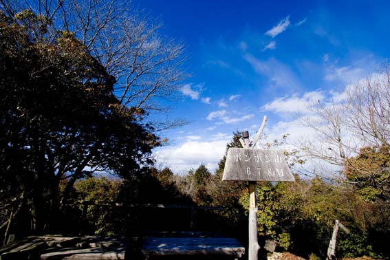 | 12:30ポンポン山てっぺんにやって来た。途中、「1時ぐらいに てっぺんか そこで 飯にしよう」 と予想していたが、早く到着した。予報士にの話では3時頃から雪になるということだったが、 お陽さんがポカポカ、青い空に白い雲がぽかりぽかり、先日話した天使が駈ける空模様、 楽しげで爽やか、お~いと叫びたくなる、呼びかけたくなる空である。 |